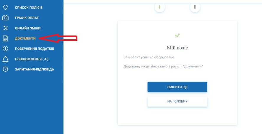 Наш запит успішно сформовано. Переходимо у "Документи", щоб перевірити його статус.