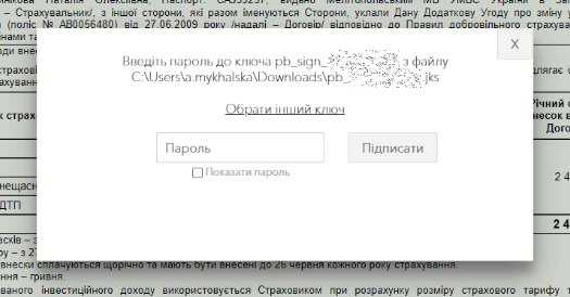 Відкриється наша Додаткова угода, тиснемо на зелену кнопку внизу "Підписати" та вводимо пароль до ключа ЕЦП: