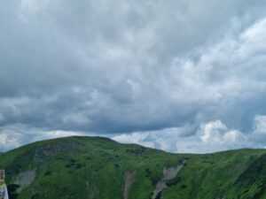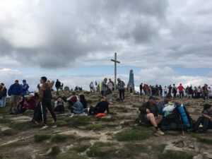 4. Майже в кінці маршруту є пагорб, який більшість мандрівників (і ми були не виключенням) приймають за вершину Говерли. Але в дійсності він лише трохи закриває її собою. І зійшовши на нього, виявляється, це ще не кінець і потрібно підніматися далі. Для більшості це буде найважчий відрізок шляху, адже підйом стає досить крутим, а ти вже добряче втомився. Однак збираєш останні сили в кулак, поглядаєш на щасливих підкорювачів, що вже майоріють на піку Говерли і вперто (однак не дуже швидко,щоб не запаморочилось в голові) долаєш останні метри.
