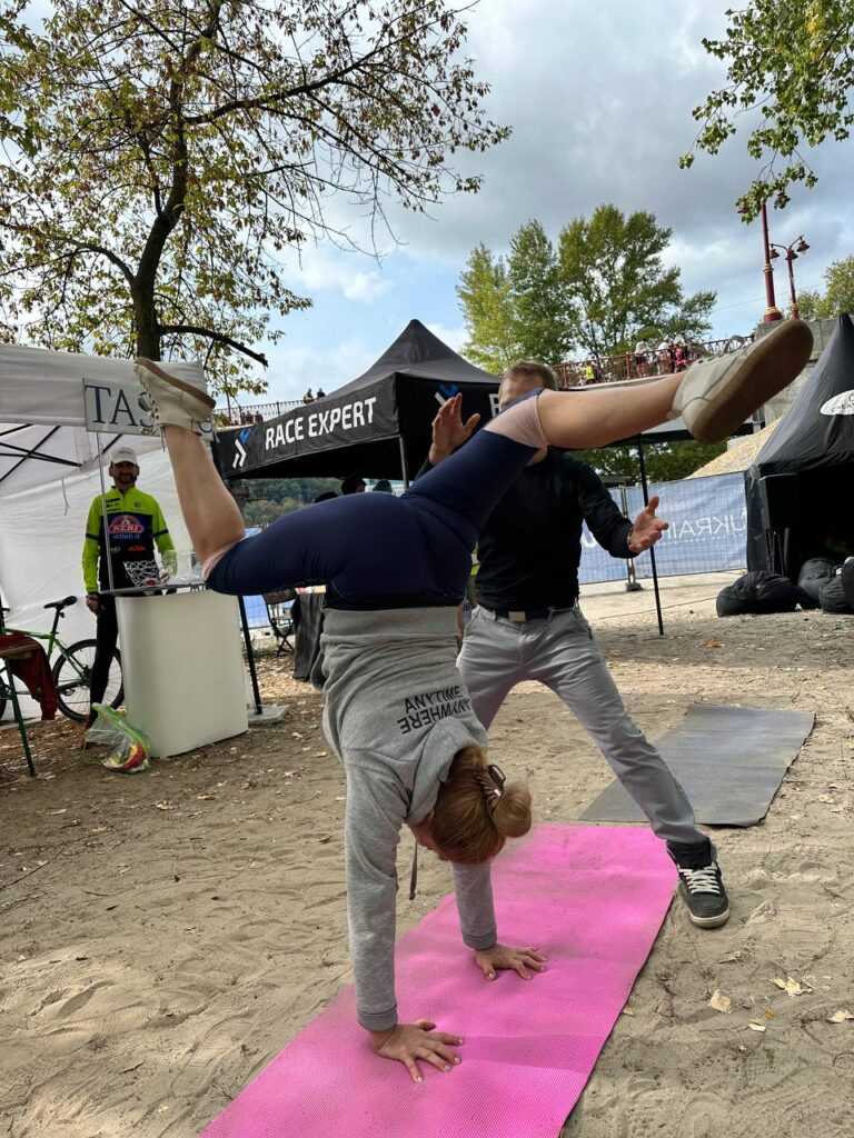 Суперзіркою наших стійок на руках стала Марина, чарівна 61-річна дівчина 😉 Вона не лише здивувала, а й додала впевненості більш юним учасникам, що за бажання все вийде.