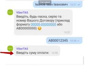 Заходимо у наш TAS-ботік в застосунку Viber (нагадуємо його номер: 096 250 01 17) та обираємо в головному меню опцію "Оплата внеску"